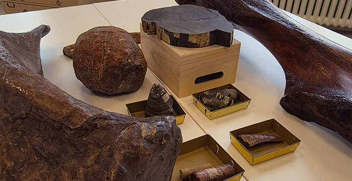Under ledning av en kunnig pedagog får eleverna undersöka och identifiera riktiga fossil, bland annat ett dinosaurieägg, ett lårben från mammut och en dinosaurietand. Besöket börjat med ett pedagoglett pass i Labbet, därefter har ni tillgång till utställningen Fossil och evolution.